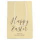 Säg "Glad påsk" med den här snyggtens presentväska, med handskrivet skript och din familj namn. Ett enkelt sätt att göra din Påsk-gåva ge eller party favors mer speciell. Färg: gult och chokladbrun.