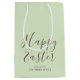 Säg "Glad påsk" med den här snyggtens presentväska, med handskrivet skript och din familj namn. Ett enkelt sätt att göra din Påsk-gåva ge eller party favors mer speciell. Färg: grönt av pastellpistaschmandlar och brun choklad.