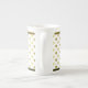 Chic, vit china mugg, med en gyllene polka punkt mönster och ett guldbrunt gräns. Anpassa om du vill lägga till text. Snygg kopp för morgonkaffe eller te. Matchande husrum finns tillgängligt.
