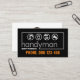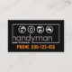Ett svart omslag har en handyman som visar ram som rymmer ditt prestigefyllda namn. Över överst finns en handyman verktyg-formad motiv som kan representera några av de tjänster du erbjuder, t.ex. kan borrmätningsbandet representera hemreparationer, snickeriarbeten osv. Användningen av verktyg är lämnat enligt er egen tolkning. Nära basen står den mobila kontakten. På andra sidan, i ett vitt omslag, är guld hammarens logotyp, följt av namn, dess kontaktuppgifter och ett sloganbildningsalternativ. Ett underbart slående kort för handyman till använda. #handyman #homerepairaster #building #byggnad #entreprenör #remodeling #buildingingaster #homerepair #interiordesign #homeImprovement #handymanTools #zazzlemade