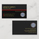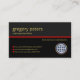 En röd linje skär över kortets ansikte som avgränsar den övre grått lagrar mot dess svarta motsvarighet nedan. Det översta grått-biet har din prestigefyllda namn och jobbtitel med en sloganbeskrivning nära högernas vägg. Du kan ändra bildtextredigeringarna till kostym som du behöver. Bara under bildtextkommentaren är en global logotyp i guld som du kan använda. I motsatt riktning ljuger du kontaktinformationen i respektive röd knapp.