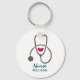 En nyckelkedja för personlig med "sjuksköterska" skriven i ett coola-skriptteckensnitt. Lite rosa hjärta och en enkel illustration av grått-stetoskop.