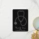 Ett tack för studenten med ett grått-stethoscope placerat på en svart bakgrund. Anpassa med ett namn på framsidan och ett meddelande på baksidan. Utformning av elegant för snyggt.