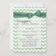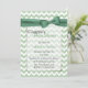 Snyggtens barnduschinbjudan utförd i ett ljust grönt och vitt chevron zigzag mönster. Bilder med en halvgenomskinlig vit text i silver-ton, i mitten, har ett band och en böjd grönt i söt längst upp. Baksidan görs i samma schevron mönster, med ett annat textområde, vid grund. Anpassa all text, fram och tillbaka till kostym som du behöver för evenemanget.