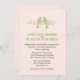 Bröllopbjudan till snyggten gjordes i en mycket blek rosa bakgrund, med grafik av en grönt och rosa blommigt med två grönt love birds, längst upp. Anpassa all text till din speciella dag. Matchande produkter är tillgängliga.