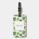 Ett bagagemärke med söt mönster som består av tropiska löv av grönt. Utformning av exotisk och snyggt. En vit kvadrat med faux guld foil gräns överst med texten inuti.