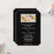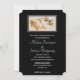 En bröllopsinbjudan med en illustration av ett par guld koi-fiskar som simmar tillsammans. Svart bakgrund.