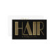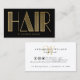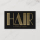 Snyggt monogram affärskort för din hårstilningsverksamhet. Design innehåller typografiskriptet "hår" i guld mot en svart bakgrund. Anpassa med dina detaljer och social-media på baksidan.