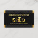 Ett grått- och svart mörk inkapslas av guld-tabbar i korthörnen. Den har ett motiv för guld-handymannen i kreativ som kan representera några av de tjänster du kan erbjuda. Över överst är namn med kontaktuppgifter nära kortets bas. På andra sidan används samma designtema. Längst upp finns en logotyp för "home handyman verktyg" i guld som du kan följa med använda följt av ditt prestigefyllda namn och kontaktuppgifter. Alla bokstäver är i Faux guld. En underbar utformning för handymans- och byggnadsteman. #ZazzleMade