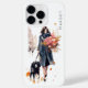 Chic, snyggt kvinna med blommigt bouquet. Hon går hennes hund genom staden. Det här telefonfodralet är anpassade med namn på den övre högerna i ett grått sans serif-teckensnitt för mörk.