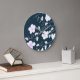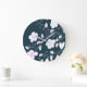 En designerklocka i en modern, vit, strömmad utskrift. Den mörk blått bakgrunden kan ändras till vilken färg som helst för att matcha din hemdekoration.