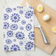 Söt kökshandduk som är tryckt med en underbar mönster av indigoblåblommor av Daisy, på en skarp vit bakgrund. Matchande produkter i min butik.
