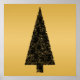 En modern Julgran-design i snyggt, med svarta cirklar. På en icke-metalisk fin guld färg-bakgrund.
