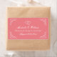 Anpassningsbar rosa av korall och etiketter på bröllop vin eller vår vattenflaska. Vätskemall med förreglande elegant i personlig med förreglande hjärtan och snyggt gräns med snabba vridningar. Skripttypografi i finare för namn av brud och groom och tack för ditt budskap. Använda som klassad bord-dekoration eller tack för gästerna vid party. Omfattar namn eller monogram plus datum för giftermål. Romantisk vintage med vackra hörn. Även bra för bröllop i retro-temat. Skapa dina egna etiketter för naturliga mineralvattenflaskor med denna klass-DIY-mall. Anpassadets bakgrund färg.