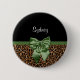 Snyggt Leopard Skriv ut Elegant Grönt Bow och Namn Knapp
