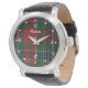 Snyggt av läderremmar, med den klassiska röda, blå, grönt, svart, gult och vit klan MacLean tartan plaid mönster, på ansikte, med vita siffror och prickar i timmarna. Vit anpassningsbar läser MacLean och kan vara personlig för att läsa vad du vill.