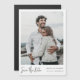 Den här enkla, snyggt, moderna fotot-bröllop spara datum-magnetmallen innehåller namn, datum och bröllop under fotot tillsammans med ett meddelande om att spara datumet som förmedlas med ett livligt, avslappnat teckensnitt. Det här alternativet för att spara datumskriptet i svart är en bild och kan inte ändras. Du kan välja att ändra teckensnitt, interpunktion eller färg som används för andra inslag i den här designen. Du kan t.ex. välja att ge ett visst färg till den text som du redigerar för att visa dina egna detaljer. Namn, datum och plats är som standard ett något mjukt svart. Gör den här chicen magnetisk för att spara datumkortet unikt för dig med den intuitiva designen verktyg, ditt favoritfoto och din inspiration. Vi har ett urval av andra moderna minimalister som sparar datumkorten i olika format, så var snäll och titta!