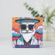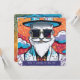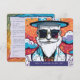 Kortet består av en färglös illustration av en modig man med vitt skägg, rektangulära solglasögon och cylinderhatt. Det här är ett underbart inbjudningskort för mode-relaterade händelser.
