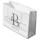 Girly Elegant Modern White och Grått Monogram Initial Namn Namnteckning Script Anpassningsbar Personlig Gift Bag. Den här designen med första namn i en söt-handskriven svan-teckensnittstypografi (eller kalligrafi) med stil--dekortecken (eller calligrafi) med första ordalydelsen med texten "BRIDESMAID" i grått svart på vit bakgrund. Dessa är lätta att anpassa. Den här feminina presentsäcken, underbart tillbehör till möhippa, bröllop, till ett bridesmaid-frieri- eller bachelorette-parti och det är till den flicka som kärlek unika minimalistiska sak.