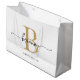 Girly Elegant Modern White och Guld Monogram Initial Namn Namnteckning Script Anpassningsbar Personlig Gift Bag. Den här designen med första namn i en söt-handskriven typgrafi (eller kalligrafi) av svan-typsnitt vid stil-byten, med inledande monografi med texten "BRIDESMAID" i guld och svart färg på vit färg-bakgrund. Dessa är lätta att anpassa. Den här feminina presentsäcken, underbart tillbehör till möhippa, bröllop, till ett bridesmaid-frieri- eller bachelorette-parti och det är till den flicka som kärlek unika minimalistiska sak.