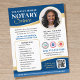Marknadsföring-flygare är ett underbart sätt att annonsera om din notarieverksamhet och locka nya kunder. Den här snyggten visar ditt foto i ett runt ram, med en elegant guld-övertoning. Anpassa mallen med ditt namn, dina autentiseringsuppgifter, din kontaktinformation, ackrediteringens logotyper, tjänster och en praktisk QR-kod för möte schemaläggning. Texten kan anpassas till ditt företag i kostym. Perfekt för en notarius publicus, ett lån som undertecknar Agent, Mobile Notary, Auktoriserad Notary Trust Delivery Agent (CNTDA), Apostille eller andra jurister. Tryckt färg: mörk blått, guld, svartvitt. Köp onlinen för mer populära produktidéer och produktartiklar, designade för notarier!