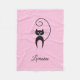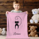 Mjuk mysigt filt visar en silhuett av en svart katt, som står med krämande svan ovanför kattens huvud. Anpassa och anpassa namn som visas under katten i ett elegant-skript. Ändra standardbakgrundsbilden för rosa färg. Kattdjuret för ljus, snyggt, modern och coola för kattälskare, djur älskare, veterinärer, nyfödd bebis, barn och nytt mammor. Gör en underbar gåva.