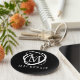 personlig av snyggt, elegant nyckelring med dekorativt monogram eller inledande vita med namn mot en redigerbar svart bakgrund. ÄNDRINGAR: Ändra bakgrunden till färg, välj en stil-bildbakgrund eller ändra textteckensnittet stil, färg, storlek och placering genom att klicka på CUSTOMIZE YTTERLIGARE under avsnittet PERSONALIZE. Kontakta designern via Zazzle-Chatta eller makeitaboutyoustore@gmail.com om du vill att designen ska ändras, på en annan produkt eller om du vill samordna produkter.