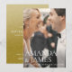 Den här snyggten har det moderna fotokortet bröllop spara datum en ren, enkel utformning och en bas av graderat guld på baksidan. Du kommer att märka att teckensnittet på månadens baksida är större än storleka som följer. Om du skriver in din månad i stort brev får du det här utseendet. Men om du vill att månaden ska visas som mer lik på storlek till resten av ditt datum, använda lägre fodral brev för månaden, eftersom våra inställningar automatiskt kommer att ändra den till stort brev på en storlek som liknar resten av datumet. Du kanske föredrar det här, så försök med båda för att se vilket kostym du har stil. Använda designen verktyg för att anpassa kortet och göra det unikt för dig med ditt favoritfoto!