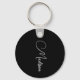 En enkel, snyggt, skript-namn-nyckelkedja med vit typografi på svart. Minimalistiskt stil.
