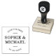 Snyggt Modern Ett par Spara datum frimärke. Anpassa den genom att ersätta platshållartexten med namn och datum. *Observera att Zazzle Watermark som visas i zoomförhandsvisningen INTE visas på den färdiga tryckta produkten. © Rosewood och