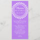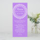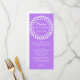 Lång och smala bröllop bord-meny i violett lila, med en vit prickad cirkel överst. Anpassa all vit text till kostym på din bröllopsmottagningsmeny. Snyggt tillägg till din bröllopsmottagning.