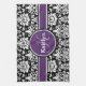 Elegant, feminin, blommigt, fukta mönster i svart och vitt med anpassade namn i lila för din första monogram brev och ram personlig.
