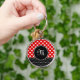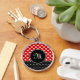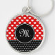 Nyckelkedja med röd och svart snyggt med ditt monogram och vita hjärtan i polka punkt mönster