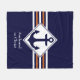 Snyggt Blankett med stor ankare inuti en vit ruta i mitten. I bakgrunden är rand i färg i WHITE och TAN, mot mörken NAVY BLUE. I grund finns ANPASSADE text som säger ANCHORED IN CHRIST, som du kan PERSONALISERA genom att lägga till ditt namn eller din båt namn, etc.