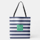 Snyggt Navy Blue Rand och Grönt Monogram Tygkasse