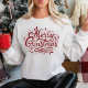 Den här festliga jultröjan har ord i "God jul i modernt skript och blomstrar. Perfekt för julens Julhelg.