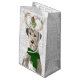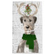Hundälskarna kommer att bli varma för att ta emot eller ge denna söta och roliga helgdag-presentväska med en klädd för säsongen Irish Wolfhound i en grönt vinterscarf och med tändare som har mistleton hängande från dem.