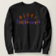 Den här snyggten och trendiget Halloween-tröjan har ord "Merry Halloween" i festive lila och orange färg.