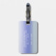 Den här chic bagagetaggen har en pastellblå ombre-bakgrund med mörkblå skript namn och ljusare inledande brev monogram. Anpassa fält eller ta bort ett eller flera textobjekt framtill. Fyll i personligen fält för baksidan om du köper den båda sidformaten. Gör det till en söt personlig.