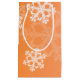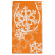 Snyggt och modern festlig mönster med orangens bakgrund och elegant, vit snöflingor. Den rena, geometriska snöflingan ger en aning vinter-charm, vilket ger en sofistikering och en fin fläck. Perfekt för inslagning av gåvor på ett minnesvärt och öga-fångstsätt. Den här designen blandar sömlöst modern estetik med helgdag, skapar den som ett perfekt val för elegant helgdag, julklapp och firande och sprider glädje till alla. En charmerande blandning av söt och snyggt - lägg till en aning modern elegans i dina gåvor med den här stilisga snöflummen mönster.
