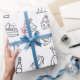 Ge dina gåvor en klassisk charm med detta tidlösa bröllpsikon-inslagspapper. Den sofistikerade svart-vita designen presenterar en förtjusande samling handritade illustrationer som fångar bröllopsdagens romantik, inklusive bröllopsklänningen, klockor och champagne. Perfekt för bröllopsgåvor, möhippor eller årsdagar, ger detta eleganta papper en graciös och personlig touch till vilken present som helst och hjälper till att fira det lyckliga parets speciella ögonblick.
