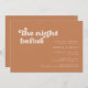 Kvällen före.. Se till att allt är perfekt för den stora dagen. Få några moderna inbjudningar till din bröllop-repetitionsmiddag. Ett tema för chic: Anpassa denna något vintage- och snyggt typografi för din bröllop-stationär, med ett bränt tema för orange, terracotta, brunt socker och persikor rosa färg. Fullständigt anpassade text, färg och bakgrunder.