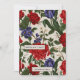 Den vackra vintagen ser ut som blommigten skriver ut julhälsningskortet med snyggt söt rött och blå botaniska blommor med grönt löv på en taupbakgrund och med ett sjudande baksida av kortet. En ren jul hälsning med elegant, vitt skript och personlig namn fyller i det här festkortet.