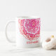 Vackert mugg med ett eget namn och en originell Bohemian Mandala-utformning, rosa och rött på vit bakgrund.