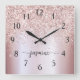 Girly Glam Ro Guld Glitter Metallic Monogram Namn Script Anpassningsbar Personlig Square Wall Clock. Den här designen som innehåller ditt första namn i ett söt-handskrivet stil-swash svan-teckensnitt namnteckning typografi på den metallfolie för rosa ros med glam guld gnistra glitter gräns . Dessa är lätta att anpassa. Underbar snyggt kvinnlig hemmauppvärmningspåva, även för födelsedag, mor dag, bröllop, möhippa, söt 16 födelsedagsfester och babydusch, studenten och det är för den flicka som kärlek unika gnistra snyggt sak .