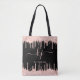 Sylish, Girly, Elegant, Light Ro Guld Glitter Drips 2 Monogram Script anpassningsbar personlig namn monogrammed tote bag on black. Med ett modernt lyxfaux ljusa rosa ro guld glitter som droppar ram, ett stort dubbla-tecken med monogramstil med dekortecken (stort storlekt initialer) och ett serieteckensnitt namn i ljus rosa på svart bakgrund. Enkel att anpassa den. Underbar kvinnlig girogåva till flickvän, mor, födelsedag, bröllop, söt 16 födelsedagsfester, möhippa och babydusch, affärsarbete, professionell arbete och till alla som tycker om söt glamourous shiny sak.