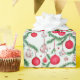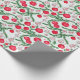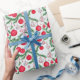 Snyggt som är papper med vattenfärgsröd och grönt Löv mönster och Julgran dekorationer mot vit bakgrund. Perfekt för inslagning av en snyggt för jul eller en vinterfesttid för tillfälle.
