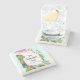 En sten underlägg med en söt och vismisk rosa flamingo. Omgiven av tropiska löv av grönt och röda och gult hibiscus blommor. En rektangulär form, övertoningen guld ram i mitten.