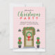 Jul PARTY | Snyggt, illustrerad ytterdörr och promenad, dekorerad till jul. Rödbögar, grönt, andetag och till och med ditt första på framdörren, allt på en söt rosa bakgrund. Så förtjusande.