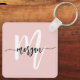 Snyggt Rosa Modern Script Girly Monogram Namn Nyckelring